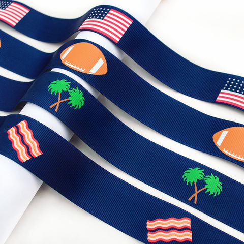 Gordon Ruy Băng Mỹ Cờ In Logo 1 ''Grosgrain Ribbon Với Hai Màu Sắc Màn Hình Mực In Logo Cho Món Quà Kỳ Nghỉ Gói