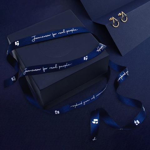 Gordon Ruy Băng Tùy Chỉnh 1/2 Inch Màu Xanh Hải Quân Mặt Duy Nhất Satin Ribbon Với Màn Hình Màu Trắng Mực In Logo Cho Hộp Của Bao Bì
